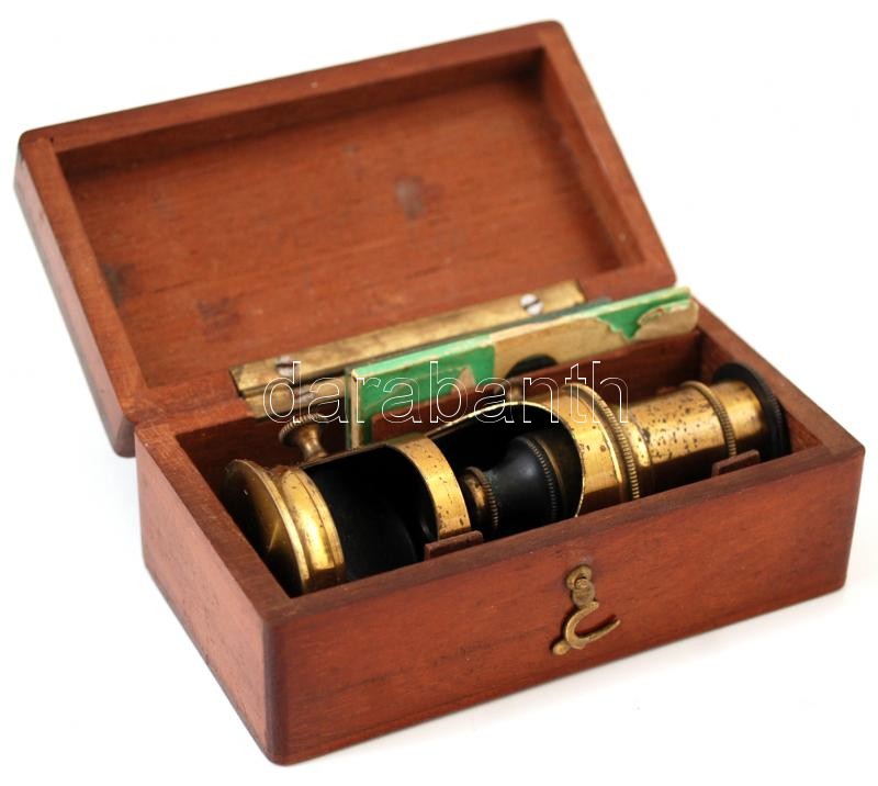 Kisméretű utazó mikroszkóp fa dobozban, üveglapokkal, h: 7,5 cm https://www.darabanth.com/hu/236-Gyorsarveres/236.0/Festmeny-mutargy-papirregiseg-egyeb/Bolhapiac~400022/Kismeretu-utazo-mikroszkop-fa-dobozban-uveglapokkal-h-7-5-cm~II1087710