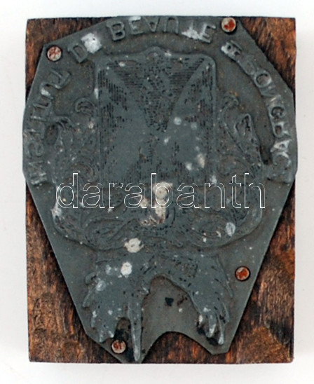 Leírás: Régi nyomólemez fára erősítve, " Institut de beaute de Pongácz" felirattal, 5×4 cm