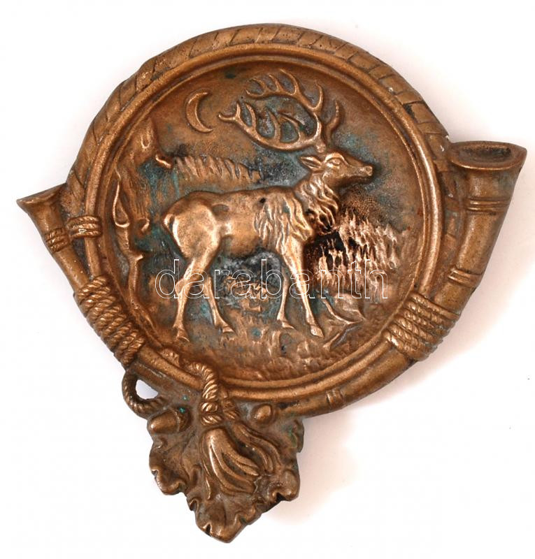 Leírás: Vadász témájú tálka, réz, jelzés nélkül, 13×12 cm