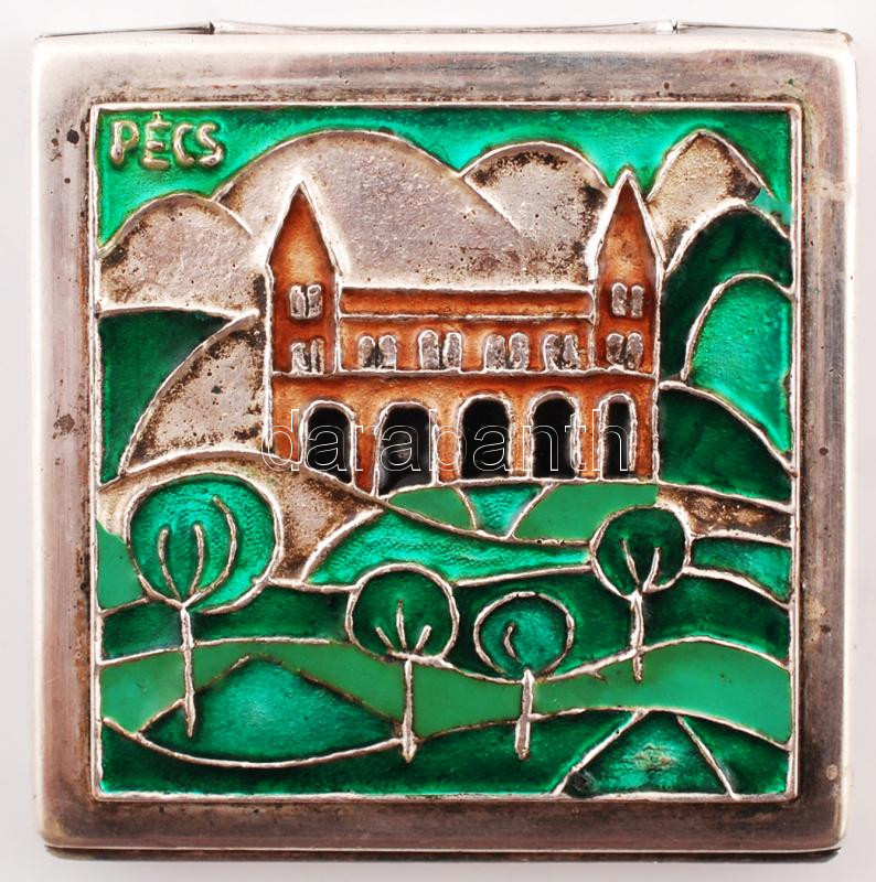 Ezüstözött fém szelence, "Pécs" feliratú zománcozott fedéllel, 7×7×1,5... https://www.darabanth.com/hu/236-Gyorsarveres/236.0/Festmeny-mutargy-papirregiseg-egyeb/Mutargyak-antikvitas~400008/Ezustozott-fem-szelence-Pecs-feliratu-zomancozott-fedellel-7C3977C3971-5-cm~II1083358