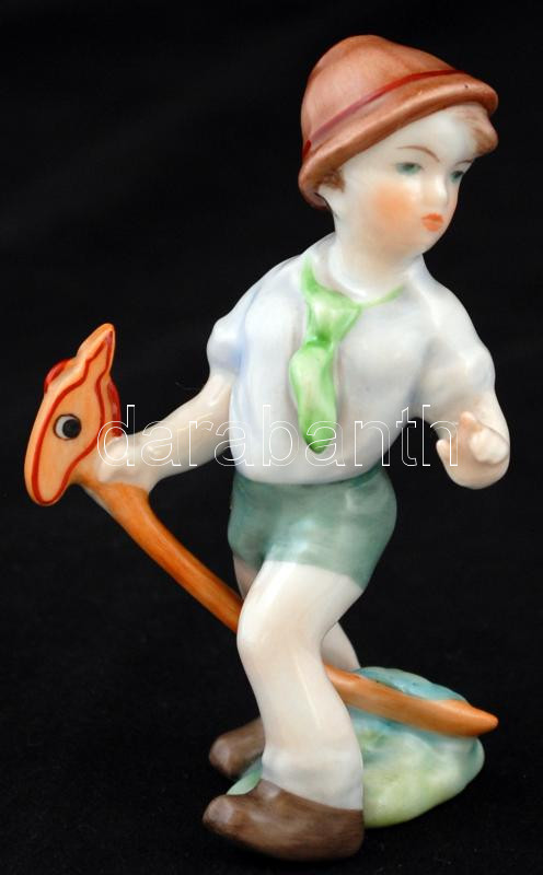 Leírás: Herendi lovagló kisfiú, kézzel festett, hibátlan, jelzett, m: 9 cm