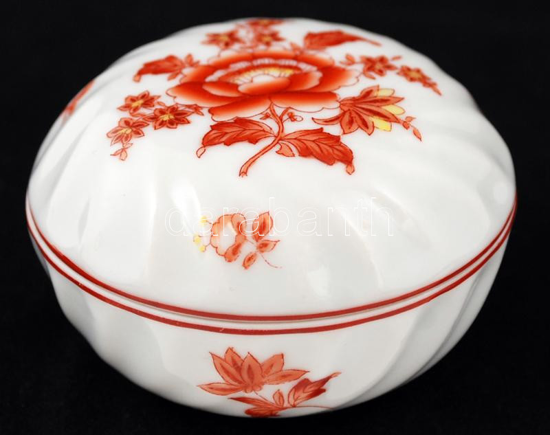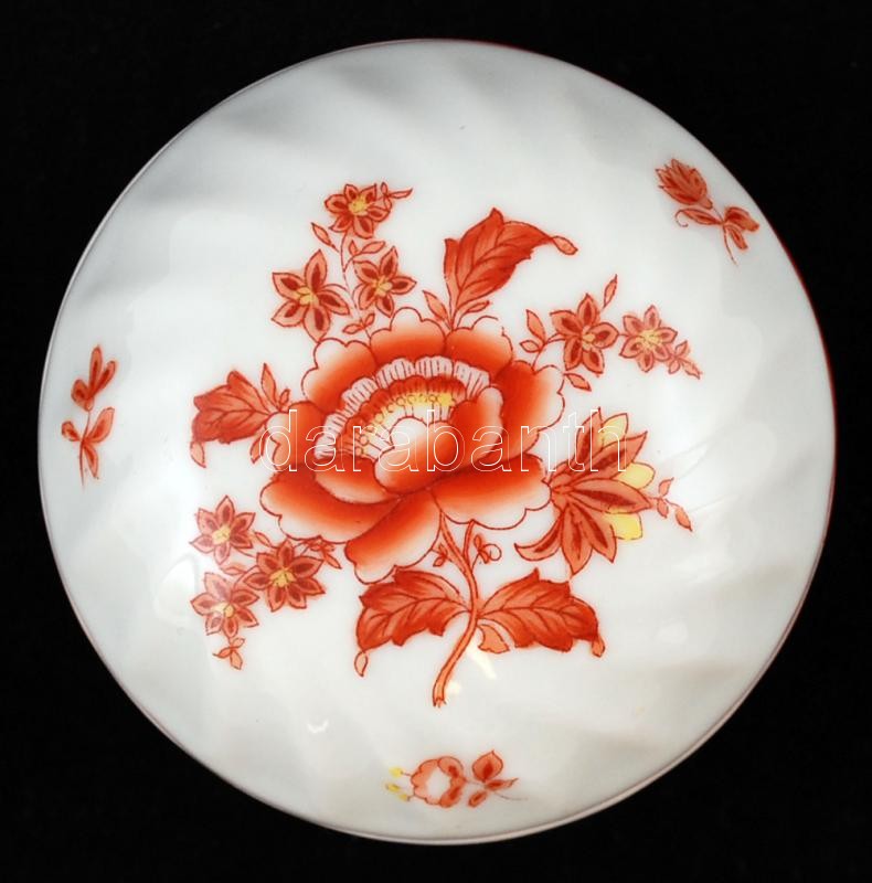Leírás: Herendi virágcsokor mintás ékszertartó, kézzel festett, hibátlan, jelzett, d: 6,5 cm, m: 4 cm