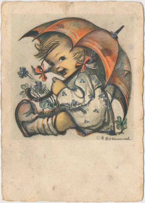 Child with umbrella s: Hümmel (fa) https://www.darabanth.com/hu/236-Gyorsarveres/236.0/Kepeslapok/Muvesz~109/Child-with-umbrella-s-Hummel-fa~II1087921