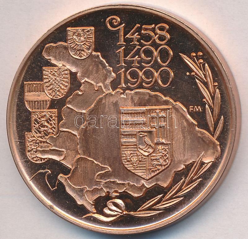 Leírás: Fritz Mihály (1947-) 1990. "Mathias Rex" Mátyás király halálának 500. évfordulója, Br emlékérem (42,5mm) T:PP