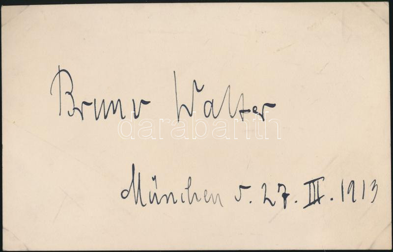 1913 Bruno Walter (1876-1962) osztrák-német karmester aláírása https://www.darabanth.com/hu/237-Gyorsarveres/237.0/Festmeny-mutargy-papirregiseg-egyeb/Alairas~200022/1913-Bruno-Walter-1876-1962-osztrak-nemet-karmester-alairasa~II1097721