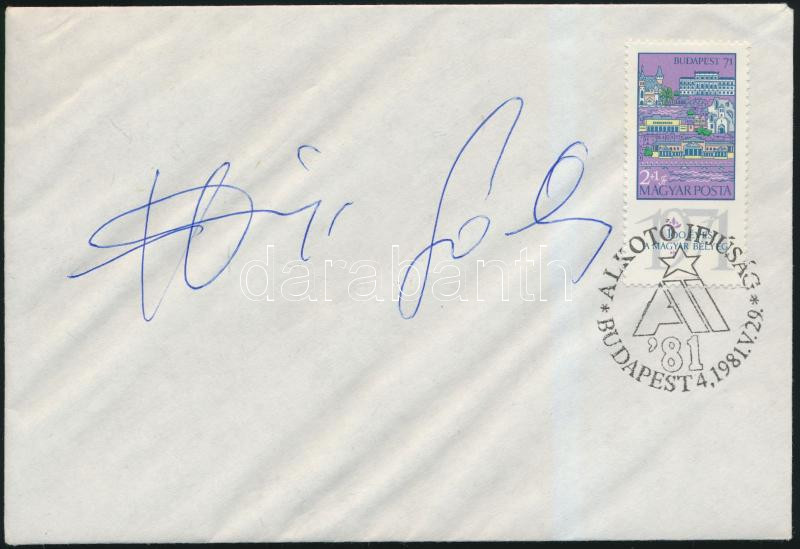 Leírás: Harsányi Gábor (Budapest, 1945. június 15.) kétszeres Jászai Mari-díjas magyar színész, író, drámaszerző, érdemes művész aláírás borítékon