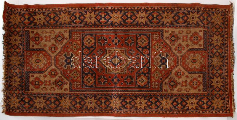 Leírás: Dekoratív, kisméretű szőnyeg, az alján sérült, 112×57,5 cm