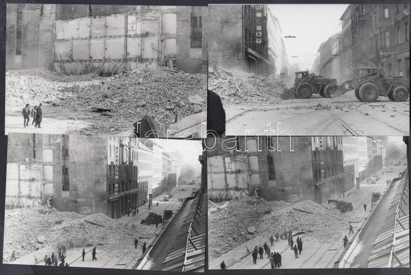 1973. február 20. Budapest, Várostörténeti fotók a Kálvin tér melletti Névtelen utcai ház bontásáról, Karai Sándor felvételei, 9 db pecséttel jelzett fotó, 9x14 cm