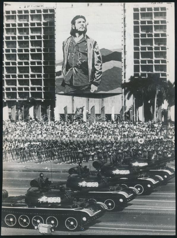 cca 1960-1970 Kuba, Díszszemle Che Guevara képe alatt, kép felületén sérüléssel, 17x23 cm /