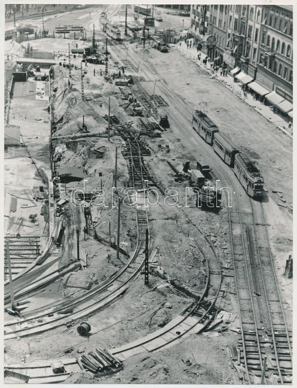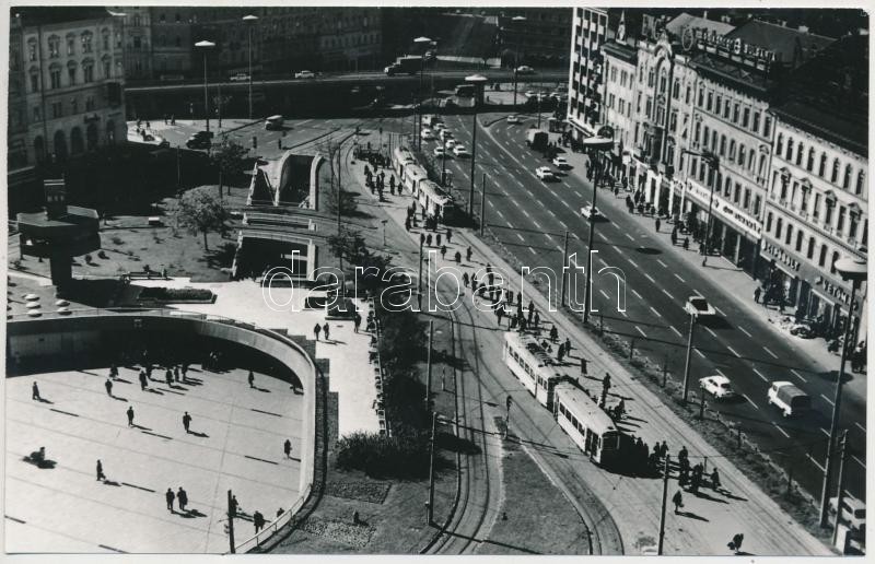 cca 1971 Budapest, várostörténeti fotók a Baross térről, az aluljáró rendszer építése felülnézetből és a már elkészült, átadott és használatba vett területről, 2db fénykép, 9x14 cm és 24x18 cm