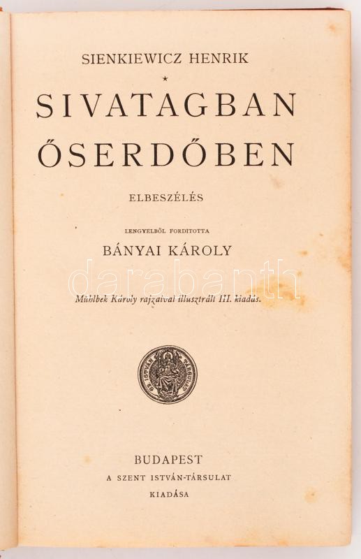 Sienkiewicz, Henrik: Sivatagban őserdőben. Elbeszélés. Ford.: Bányai K... https://www.darabanth.com/hu/237-Gyorsarveres/237.0/Festmeny-mutargy-papirregiseg-egyeb/Konyvek-Egyeb-ritkasagok~200043/Sienkiewicz-Henrik-Sivatagban-oserdoben-Elbeszeles-Ford-Banyai-Karoly-Muhlbek-Karoly-~II1096990
