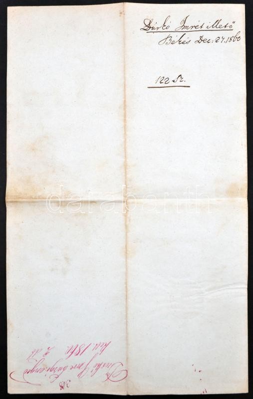 1869 Békés, magyar nyelvű katonai alkalmatlansági bizonyítvány, rányom... https://www.darabanth.com/hu/237-Gyorsarveres/237.0/Festmeny-mutargy-papirregiseg-egyeb/Militaria~200033/1869-Bekes-magyar-nyelvu-katonai-alkalmatlansagi-bizonyitvany-ranyomott-szarazpecsettel~II1098185