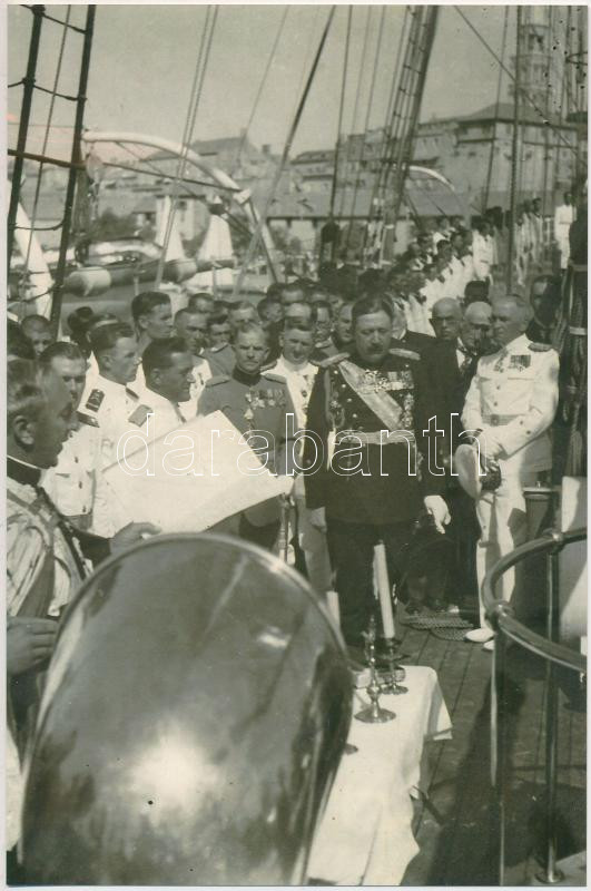 1933 Alexander I (1888-1934) king of Yugoslavia with mariners, modern copy of vintage photo, 10x15 cm