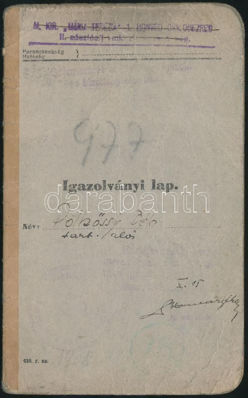 1940 M. kir. "Mária Terézia" 1. honvéd gyalogezred által kiállított ig... https://www.darabanth.com/hu/237-Gyorsarveres/237.0/Festmeny-mutargy-papirregiseg-egyeb/Militaria~200033/1940-M-kir-Maria-Terezia-1-honved-gyalogezred-altal-kiallitott-igazolvanyi-lap~II1093965