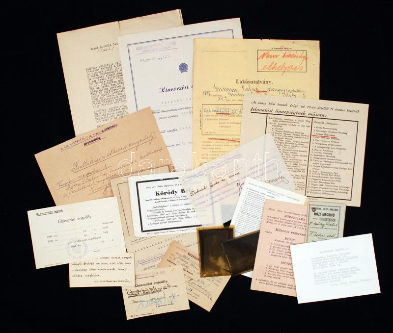 Leírás: cca 1921-56 Vegyes katonai iratok: engedélyek, meghívók egyéb dokumentumok