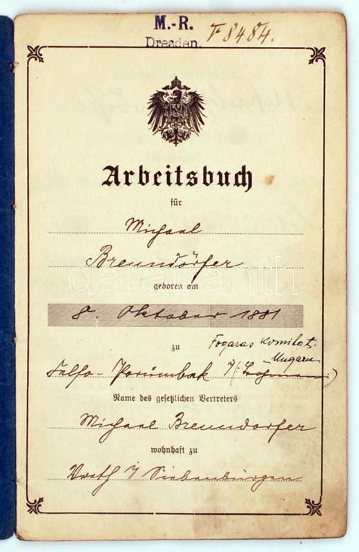 1902 Löblau, wor... https://www.darabanth.com/hu/237-Gyorsarveres/237.0/Festmeny-mutargy-papirregiseg-egyeb/Nyomtatvanyok~200037/1902-Loblau-Nemet-nyelvu-munkakonyv-munkas-szamara--3Cbr3E1902-Loblau-workers-ID~II1091104