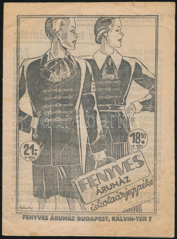cca 1922-1949 Bp. Kálvin tér, A Fenyves Áruház iskolaárjegyzéke, egyen... https://www.darabanth.com/hu/237-Gyorsarveres/237.0/Festmeny-mutargy-papirregiseg-egyeb/Nyomtatvanyok~200037/cca-1922-1949-Bp-Kalvin-ter-A-Fenyves-Aruhaz-iskolaarjegyzeke-egyenruhakkal-cipokkel-is~II1094989