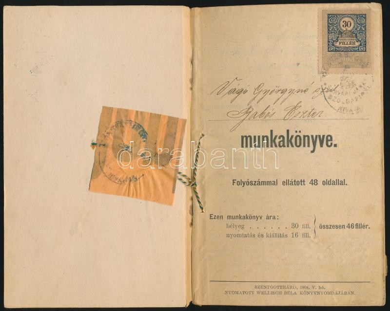 1907 Munkakönyv benne a vonatkozó szabályrendeletekkel https://www.darabanth.com/hu/237-Gyorsarveres/237.0/Festmeny-mutargy-papirregiseg-egyeb/Okmanyok~200019/1907-Munkakonyv-benne-a-vonatkozo-szabalyrendeletekkel~II1096290