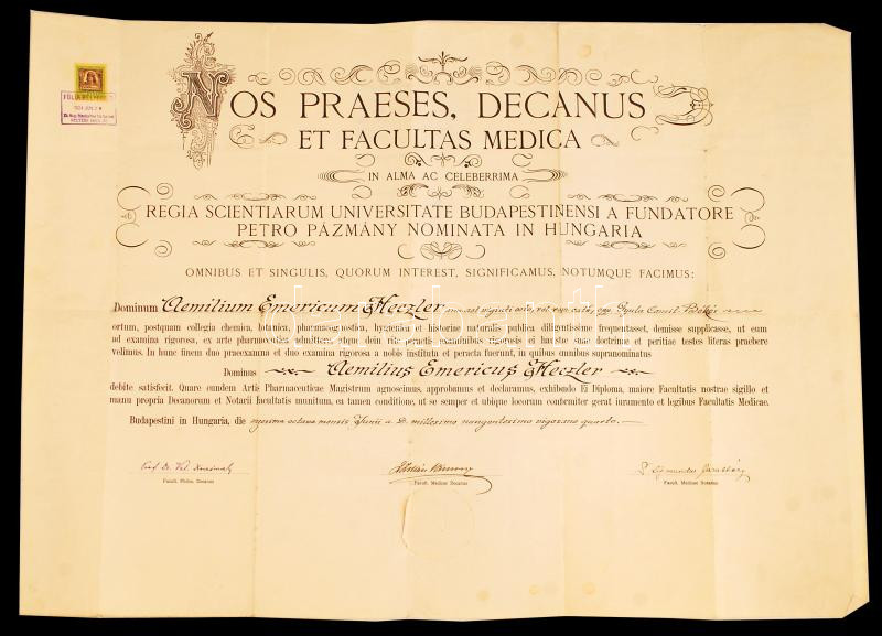 1924 Bp., A Pázmány Péter Tudományegyetem által kiállított gyógyszerés... https://www.darabanth.com/hu/237-Gyorsarveres/237.0/Festmeny-mutargy-papirregiseg-egyeb/Okmanyok~200019/1924-Bp-A-Pazmany-Peter-Tudomanyegyetem-altal-kiallitott-gyogyszeresz-oklevel-szarazpec~II1093775