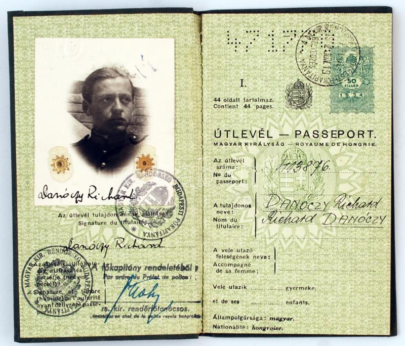 1943 A M. Kir. Rendőrség Budapesti Főkapitánya által kiadott fényképes... https://www.darabanth.com/hu/237-Gyorsarveres/237.0/Festmeny-mutargy-papirregiseg-egyeb/Okmanyok~200019/1943-A-M-Kir-Rendorseg-Budapesti-Fokapitanya-altal-kiadott-fenykepes-utlevelt-NemetorszC3~II1091624