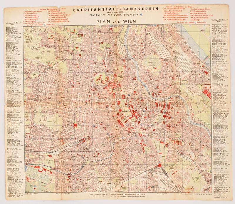 1959 Bécs térképe Ausztria térképével(Plan von Wien mit Karte von Österreich), Kartographische Anstalt Freytag-Berndt u. Artaria, 48x41 cm /