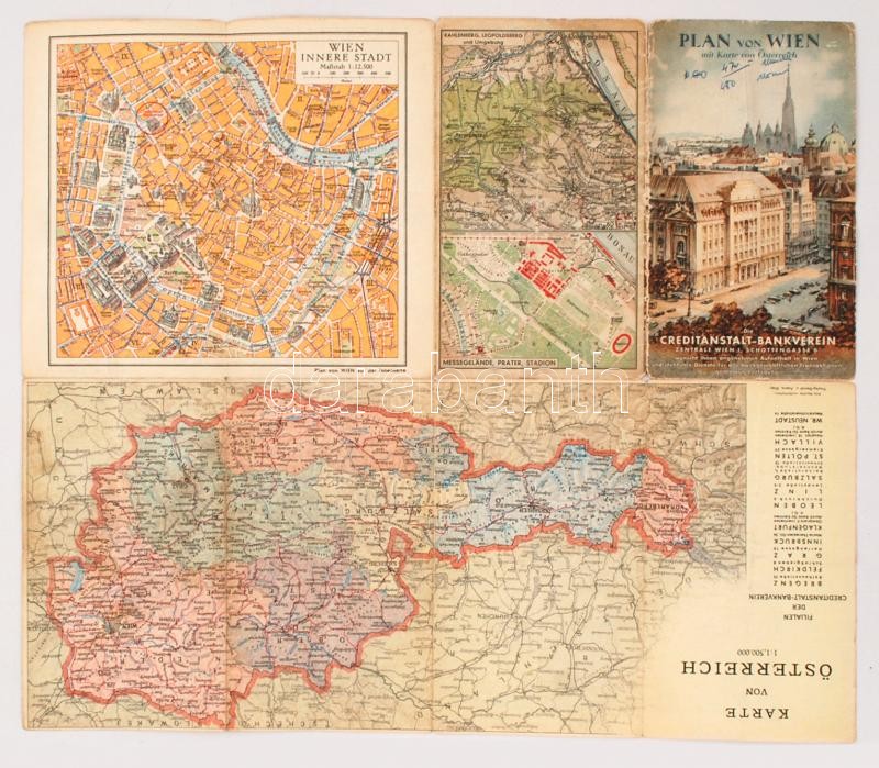 1959 Map of Vienna and Austria (Plan von Wien mit Karte von Österreich), Kartographische Anstalt Freytag-Berndt u. Artaria, 48x41 cm