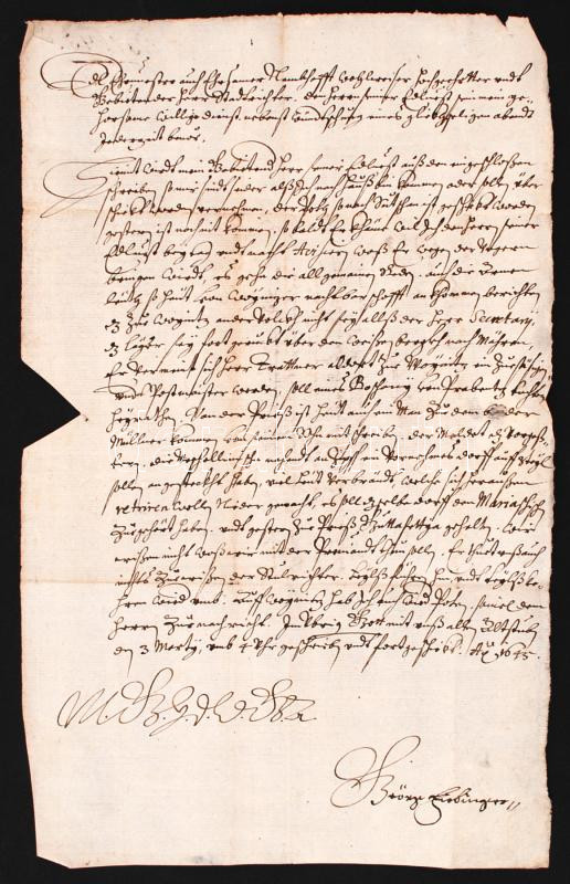 1645 A letter in German, sent to the magistrate of Kremnitz, with vax seal on it