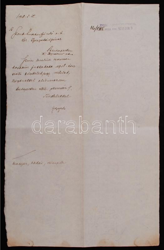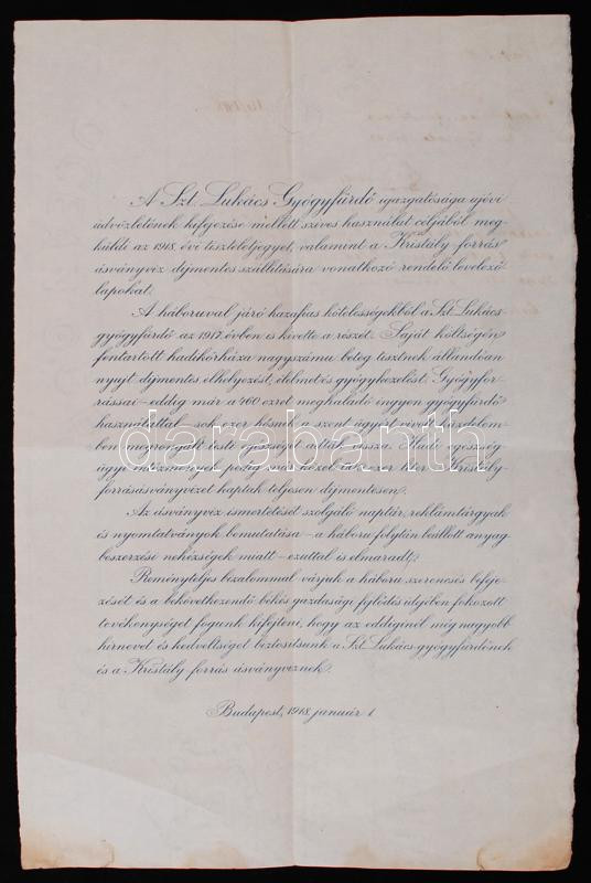 1918 Bp., A Szent Lukács Gyógyfürdő újévi üdvözlő levele, mely egyúttal tájékoztat az újévi megrendelések lehetőségéről és a fürdő által fenntartott hadikórház tevékenységéről