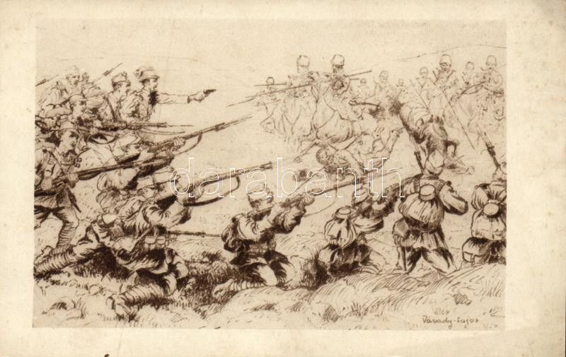 Leírás: 1916 Vitéz Taliga István csendőr Durja közelében visszaveri a kozák támadást / WWI Hungarian-Cossack battle s: Várady Lajos (EK)