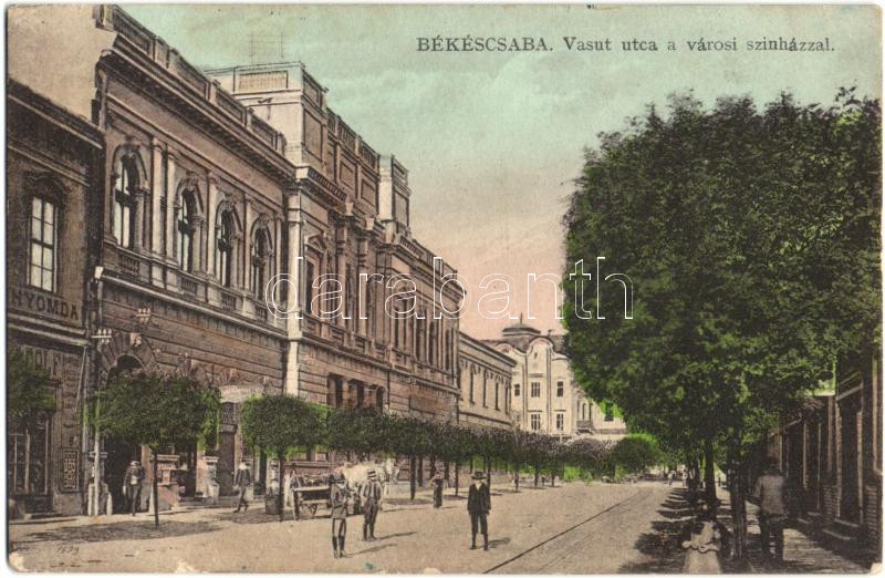 Békéscsaba, Vasút utca, városi színház, nyomda (fl) https://www.darabanth.com/hu/237-Gyorsarveres/237.0/Kepeslapok/Magyarorszag~800366/Bekescsaba-Vasut-utca-varosi-szinhaz-nyomda-fl~II1090950