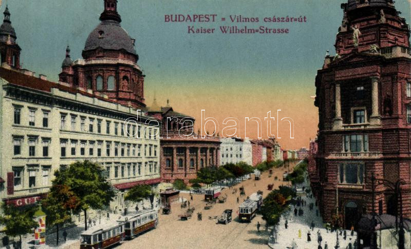 Budapest V. Vilmos császár út, villamosok https://www.darabanth.com/hu/237-Gyorsarveres/237.0/Kepeslapok/Magyarorszag~800366/Budapest-V-Vilmos-csaszar-ut-villamosok~II1089109