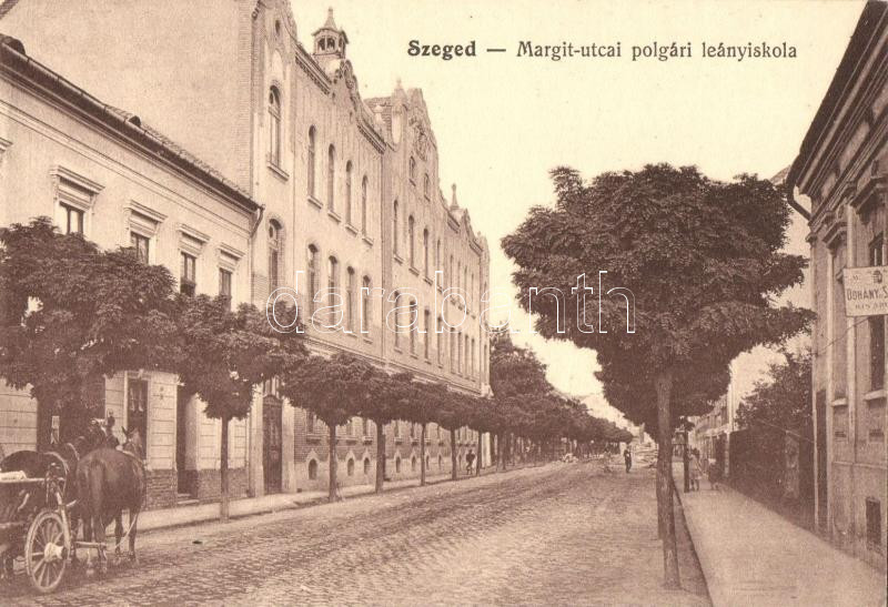 Szeged, Margit utca, polgári leányiskola, Bartos Lipót kiadása https://www.darabanth.com/hu/237-Gyorsarveres/237.0/Kepeslapok/Magyarorszag~800366/Szeged-Margit-utca-polgari-leanyiskola-Bartos-Lipot-kiadasa~II1090686