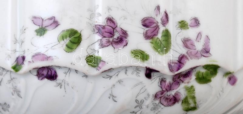 Leírás: Régi, porcelán ibolyás tál, kézzel festett, kopottas, jelzés nélkül, 23x10cm