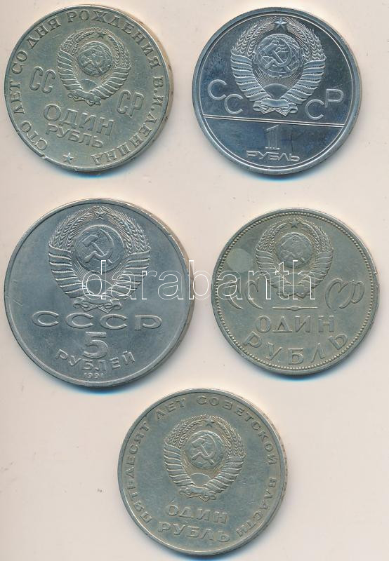 Soviet Union 1964-1970. 1 Ruble (3xdiff) + 1980. 1 Ruble "Olympics Moscow" + 1991. 5 Rubles C:AU,XF,VF