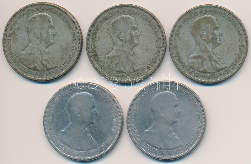 1930. 5P Ag "Horthy jobbra" (5x) T:3