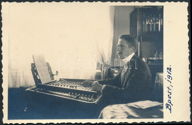 1912 Budapesti cimbalmos, privát fotólap, 9x14 cm https://www.darabanth.com/hu/239-Gyorsarveres/239.0/Festmeny-mutargy-papirregiseg-egyeb/Foto~200018/1912-Budapesti-cimbalmos-privat-fotolap-9x14-cm~II1106020