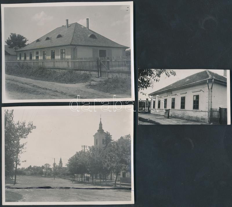 Leírás: cca 1930 Albertirsa képeslaphoz készült fotók 3 db eredeti negatív és pozitív felvételeivel