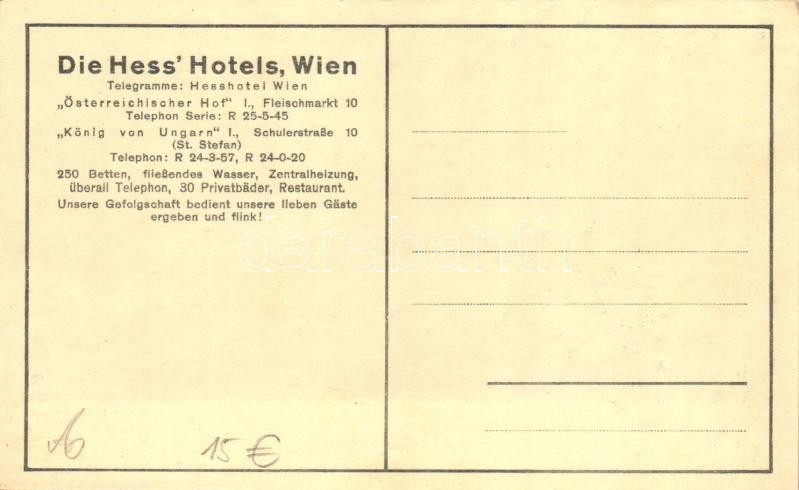 Vienna, Wien; Die Hess' 'Hotels Österreichischer Hof' 'König von Ungar... https://www.darabanth.com/hu/24-Nagyaukcio/24.1/Kulfoldi-kepeslapok/Ausztria~9453/Vienna-Wien-Die-Hess-Hotels-Osterreichischer-Hof-Konig-von-Ungarn~II1291182