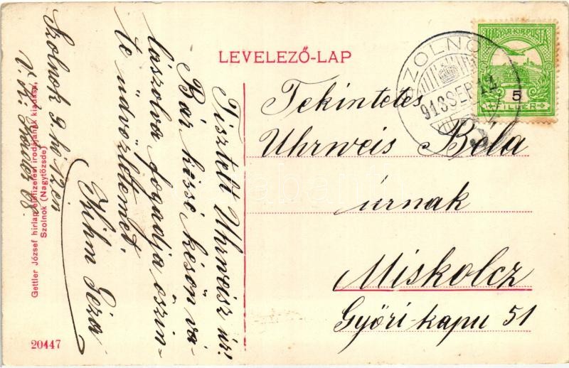 Leírás: Szolnok, Királyi Törvényház, kiadja Gettler József hírlap előfizetési irodája