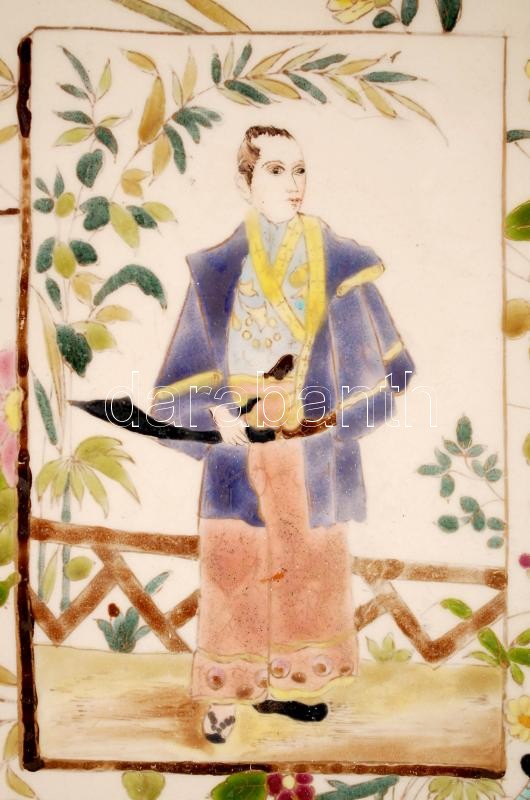 Leírás: Schütz Cilli: Szamurájos dísz falitányér. Kézzel festett mázas fajansz, jelzett, jó állapotban, d: 31,5 cm / Cilli Schütz: Samurai, ceramic plate, signed, good condition, d:31,5 cm