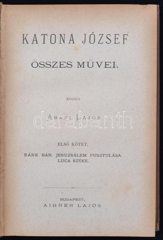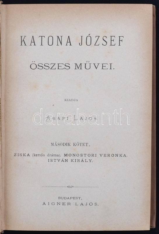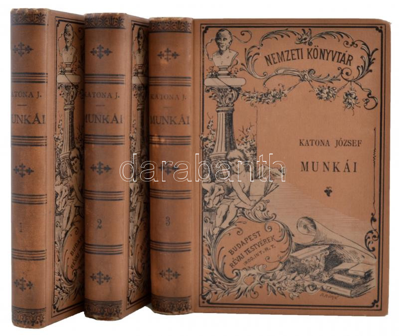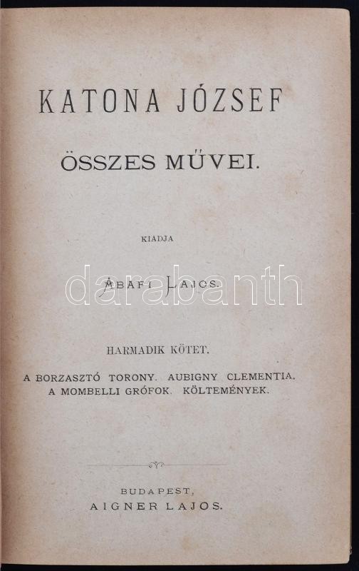 Katona József összes művei I-III. Kiadja Abafi Lajos. (Nemzeti könyvtár: 15., 16., 19.) Bp., 1880-1881, Aigner. Kiadói, szép állapotú illusztrált egészvászon sorozatkötésben.