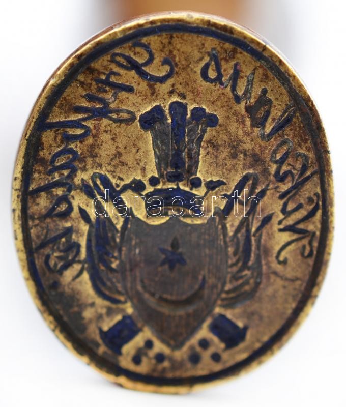 Leírás: cca 1850 Lengyel nemes Nikolausz Szybalski címeres bronz pecsétnyomó / cca 1850 Polish nobleman Nikolausz Szybalski seal maker. 7 cm