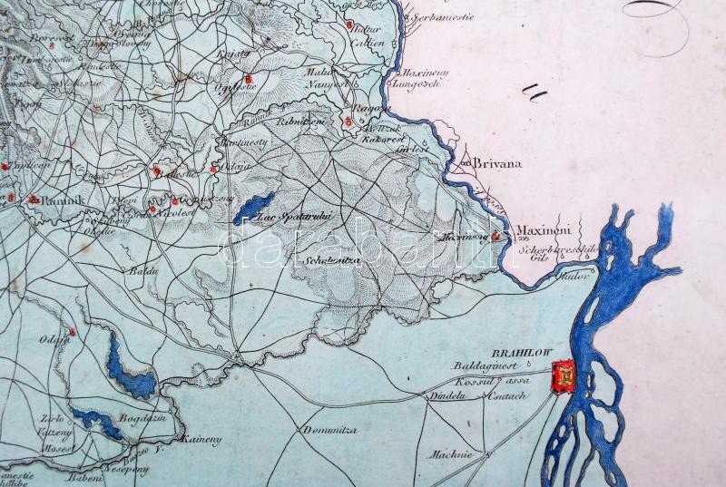 1812 Topographische Karte der Grossen und Kleinen Wallachey. Dél Erdély és Olahország térképe. 1790-es állapot. Színezett rézmetszet. paszpartuban. / Etched map of Vallachia and part of Transylvania. Colored. In paspartu. Map size: 44x26 cm