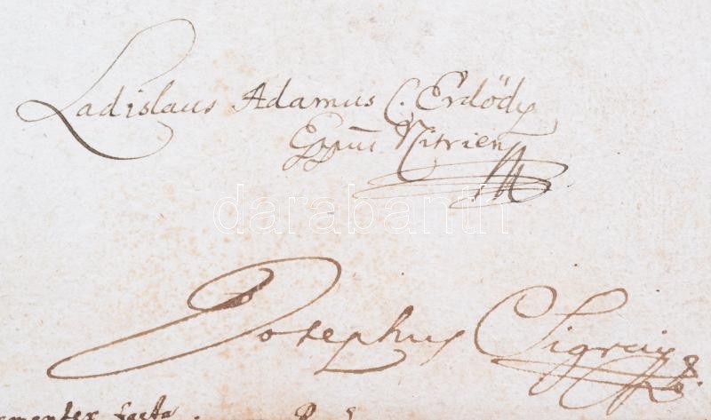 1724 III. Károly magyar király kinevező oklevele lázi Ghillányi György báró (?-1681) részére magyar tanácsosi cím adományozásáról, latin nyelven, az uralkodó sajátkezű aláírásával, felzetes viaszpecséttel, Erdődy László Ádám és Sigray József ellenjegyzésével