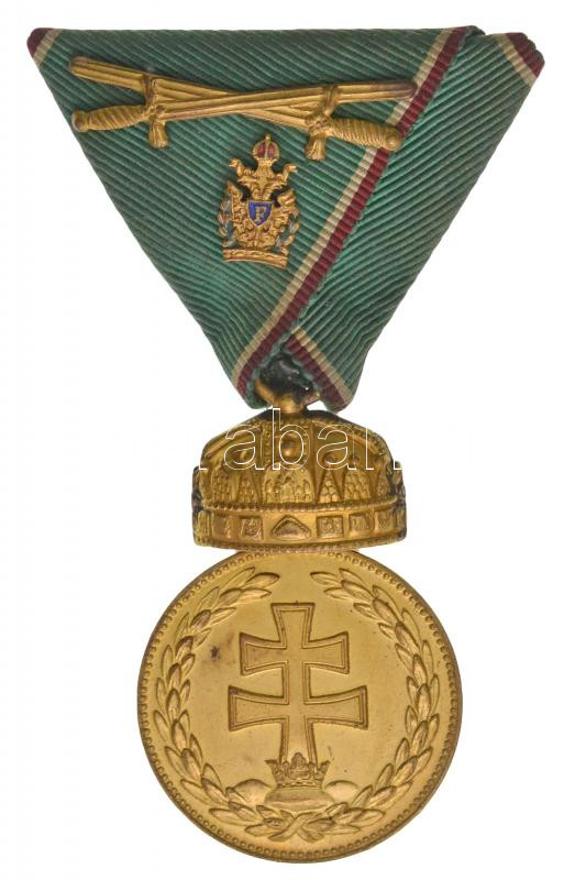 1922. "Magyar Koronás Bronzérem, kardokkal és az elmaradt Vaskorona Rend miniatűrjével" aranyozott Br kitüntetés zöld mellszalagon T:2 karcolt perem