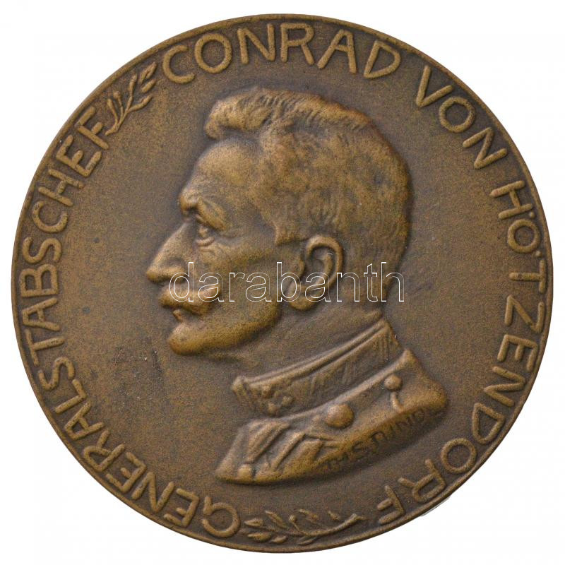 Leírás: Osztrák-Magyar Monarchia 1914-1915. "Conrad von Hötzendorf vezérkari főnök / 30,5cm Mozsárágyú 1914-1915" kétoldalas Br emlékérem. Szign.: TH STUNDL (50,5mm) T:2