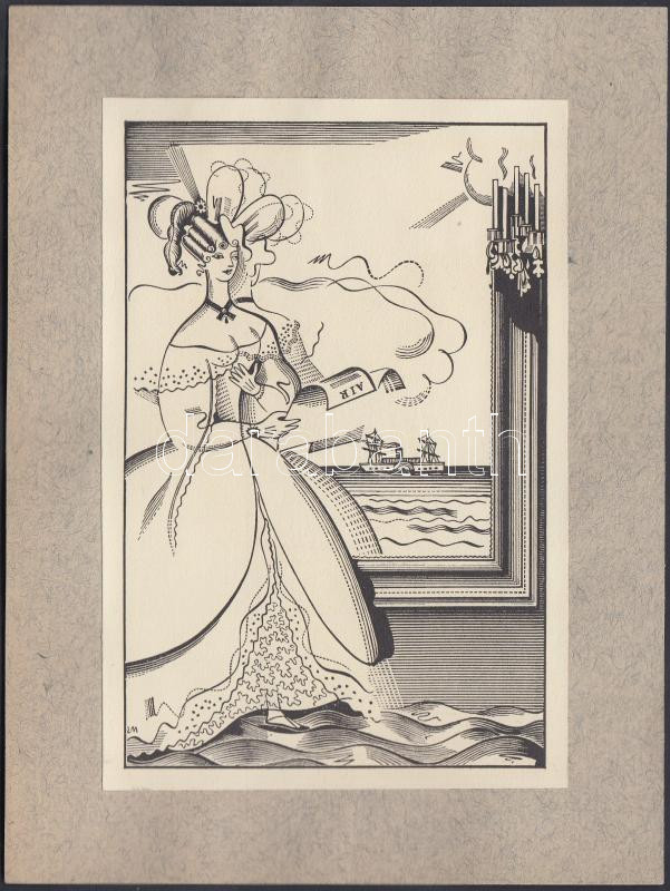 Leírás: Nemes Erich (?-?): Art deco dáma, fametszet, papír, jelzett a metszeten, 15,5×10,5 cm