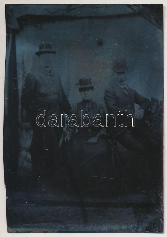 Leírás: cca 1910 Ferrotípia,családi fotó, 9x6cm