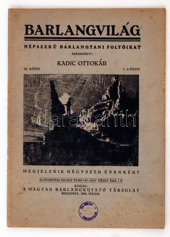1939 Barlangvilág. Népszerű Barlangtani Folyóirat. Szerkeszti:Kadic Os... https://www.darabanth.com/hu/240-Gyorsarveres/240.0/Festmeny-mutargy-papirregiseg-egyeb/Nyomtatvanyok~20005/1939-Barlangvilag-Nepszeru-Barlangtani-Folyoirat-SzerkesztiKadic-Oszkar-IX-kotet-1-2-fC3~II1108276