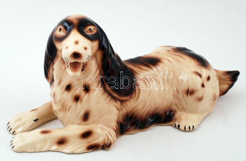 Leírás: Jelzett fekvő kutya, kézzel festett, javított, h:37 cm, m:16 cm